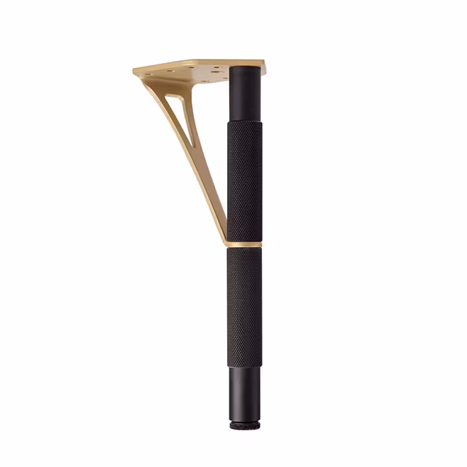 Stabilt möbelben i matt svart aluminium med stödvinkel i pulverlackad stål. Monteras på IKEAs Bestå eller annan möbler med medföljande M8 maskinskruv eller träskruv. Justerbar ställfot. Totalhöjd kan varieras mellan 20,5-22cm.